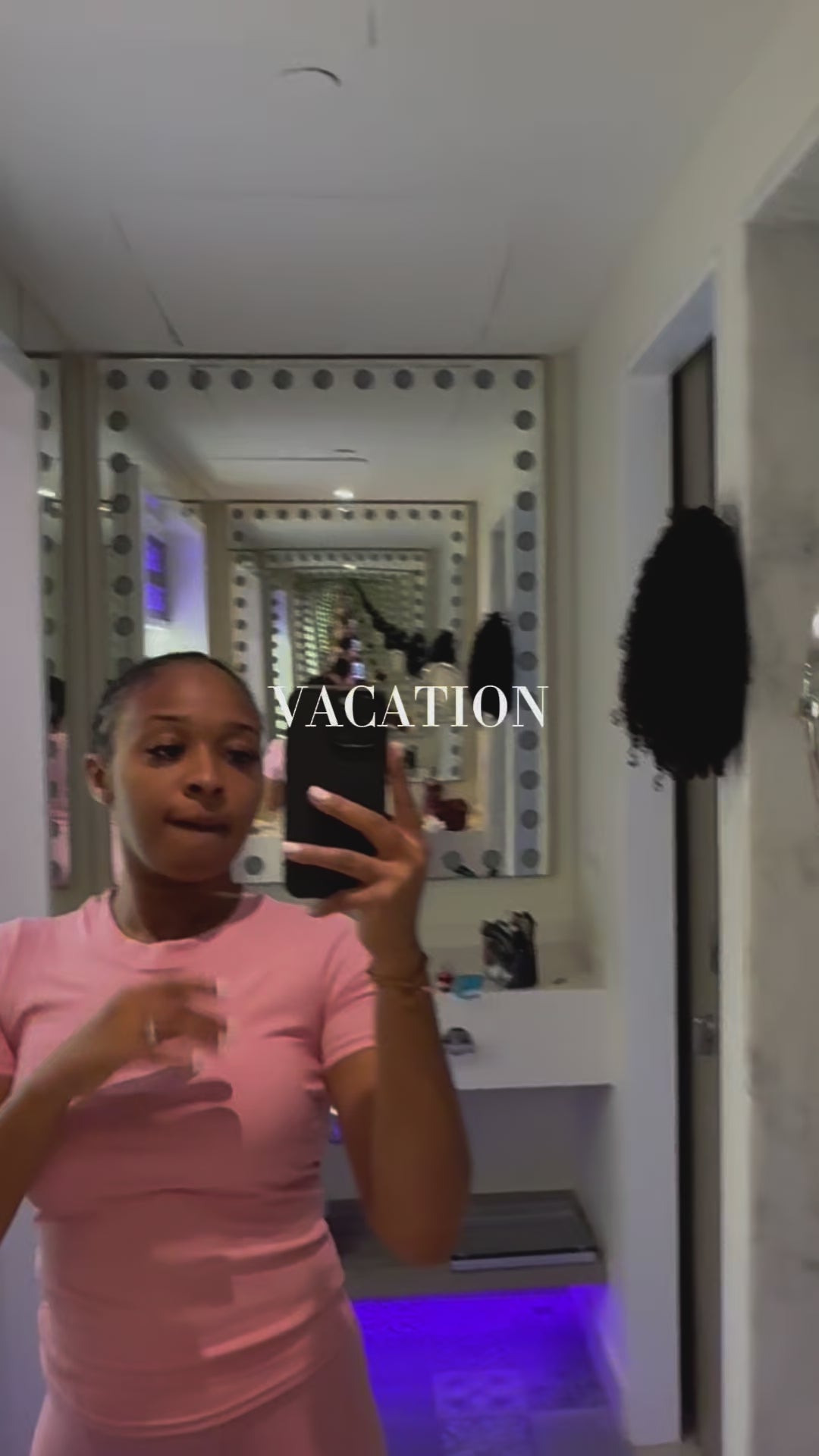 Model is wearing 14” Burmese curly defined and styled